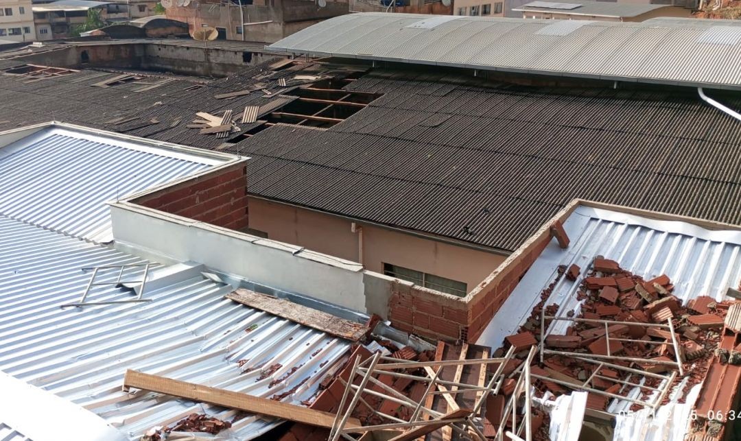 - Sede da Prefeitura também foi atingida, com danos em janelas, telhado e no Data Center, que abriga os sistemas de informação do município.