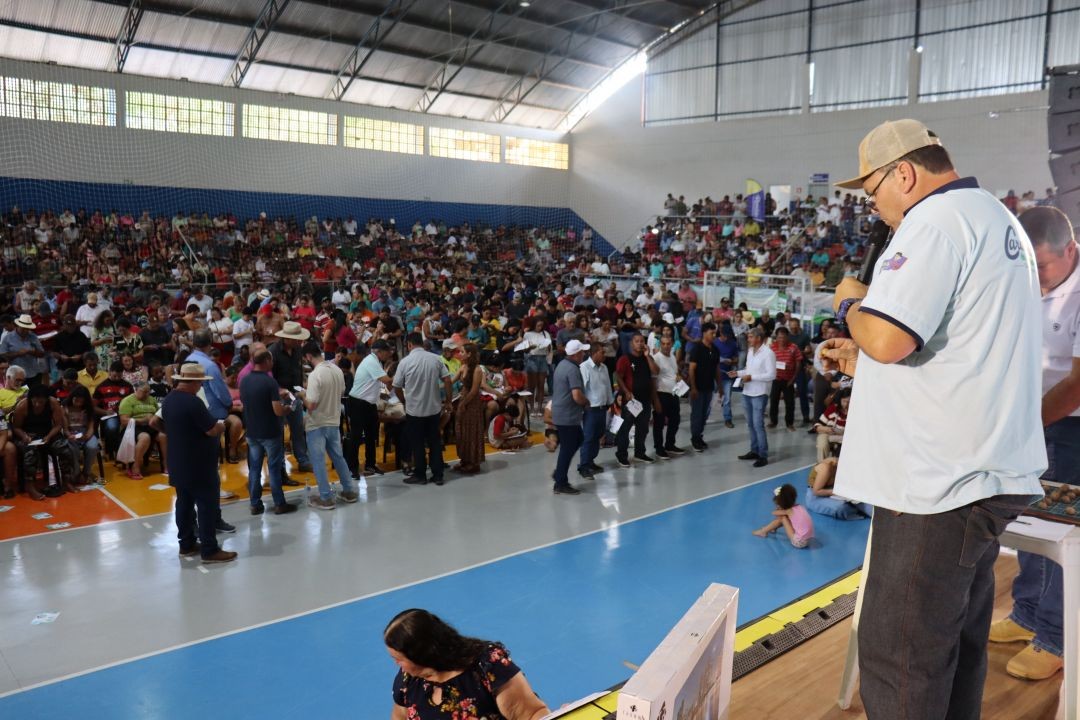 Foi realizada na tarde desta sexta-feira (28), a assinatura do termo para início das obras do programa Minha Casa Minha Vida Rural, em municípios do Espírito Santo. A solenidade aconteceu no Ginásio de Esportes Prefeito Romeu Rios, em Iúna, com a presença de representantes de trabalhadores rurais, da agricultura familiar e autoridades municipais e estaduais. A realização foi da Federação dos Trabalhadores Rurais, Agricultores e Agricultoras Familiares do Estado do Espírito Santo (Fetaes), Sindicato dos Trabalhadores e Trabalhadoras Rurais (STR) de Iúna e Irupi, Prefeitura de Iúna, Governo do Estado e Governo Federal. No local, também foi realizado um bingo que distribuiu prêmios entre os presentes.