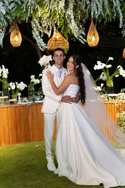 Um dos momentos mais marcantes da cerimônia foi a homenagem ao pai do noivo, lembrado com emoção durante a celebração, reforçando o caráter simbólico e afetivo do evento.
