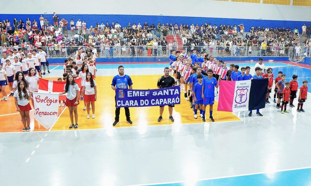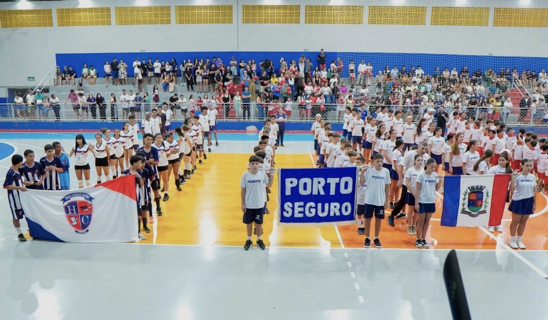 Cerimônia de abertura reuniu seis instituições de ensino no ginásio poliesportivo; competições de futsal e vôlei já começaram