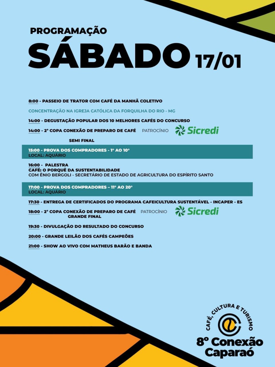 Este ano, a expectativa dos organizadores é ainda maior em número de público e de venda dos cafés. O Conexão Caparaó 2026 está marcado para os dias 16 e 17 de janeiro, com uma programação que oferece dia de campo, passeio de trator, palestras, oficinas, degustação dos 10 melhores cafés do concurso, shows ao vivo com Vittor e Samuel (sexta-feira) e com Matheus Barão e banda (sábado), além do grande leilão dos cafés campeões.