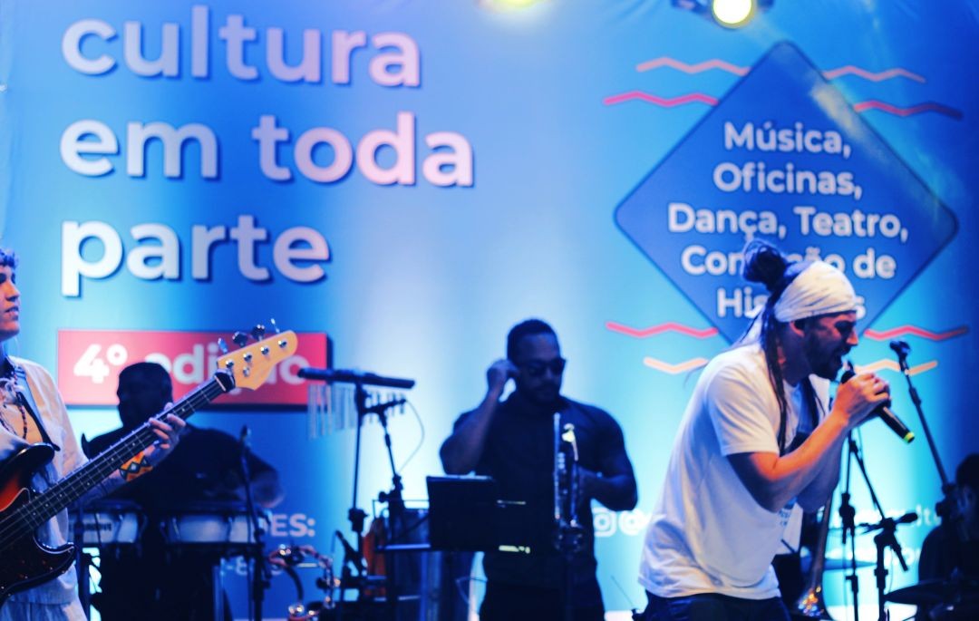 Seguindo com a programação de sábado, o balanço do reggae tomou conta do palco com a apresentação da banda Alldeia. "É sempre uma satisfação estar no Cultura em Toda Parte, um evento que a gente carrega no coração e, principalmente, estar em Patrimônio da Penha, que é uma de nossas casas, lugar que inspirou a gente, várias das nossas músicas autorais, em que a gente é sempre muito bem recebido", coloca o vocalista da banda, Thiago Soares. "A importância de eventos que valorizam a música autoral é imensa", completa.