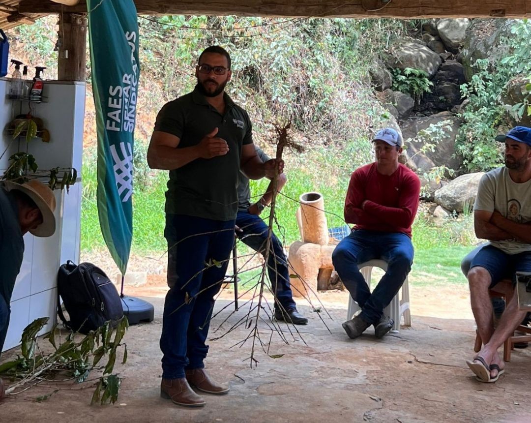 Cerca de 30 pessoas participaram do evento que foi promovido pelo SENAR (Serviço Nacional de Aprendizagem Rural) e Sindicato Rural de Iúna, em parceria com a FAES, onde técnicos apresentaram novas tecnologias e experiências aos produtores rurais. O objetivo foi melhorar o desenvolvimento socioeconômico no campo, visitando propriedades e ver como as inovações funcionam, além de trocarem experiências entre si.
