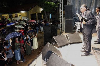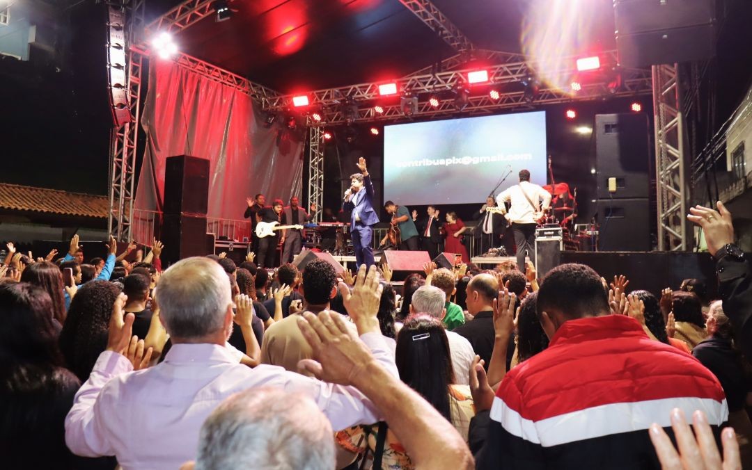 O palco, que serviu de púlpito para os pastores presentes e cantores da região, foi montado na Praça Central da cidade, onde famílias e igrejas se reuniram para cantarem e louvarem juntos. O que também fizeram na apresentação do cantor gospel, de renome nacional, Samuel Mariano.