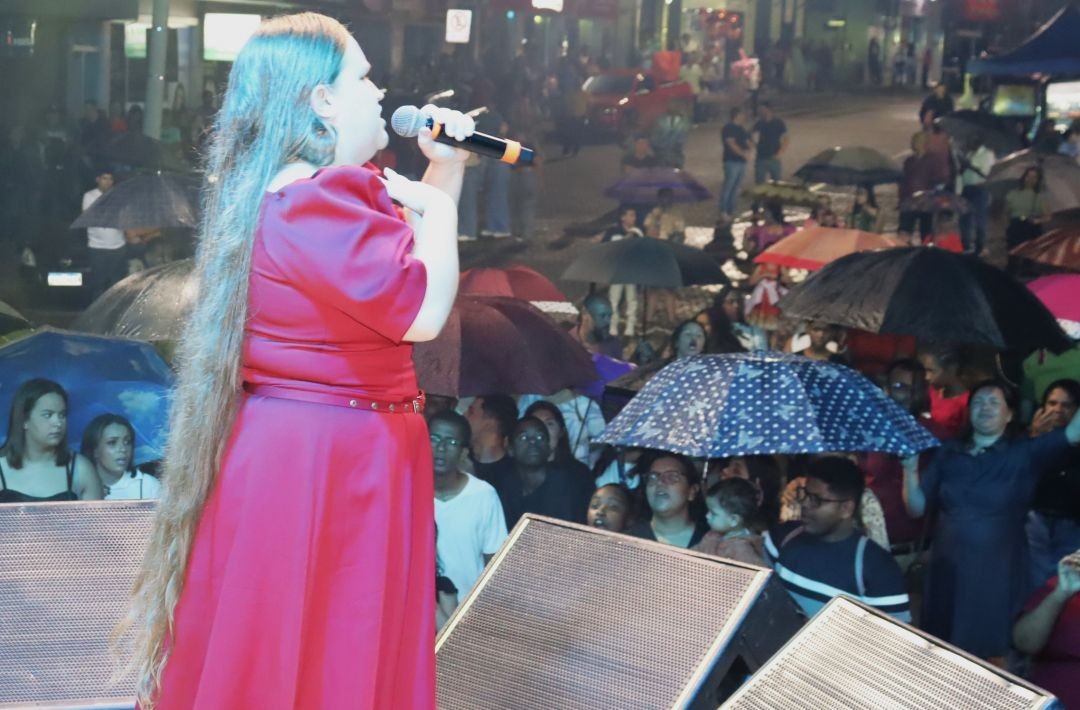 Dia do Evangélico reúne fiéis em Dores do Rio Preto em noite de chuva no sábado