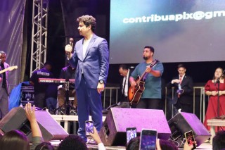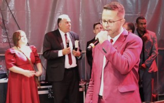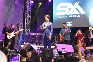 Apesar da chuva insistente, fiéis de igrejas de Dores do Rio Preto e visitantes celebraram com muitos louvores e show com Samuel Mariano