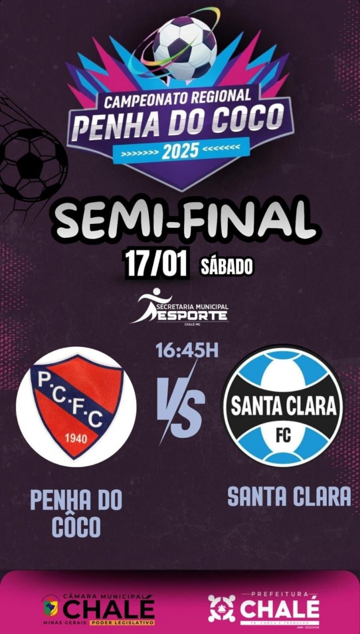 O jogo faz parte do Campeonato Regional Penha do Coco 2025, que está em fase de semifinal. A equipe da Penha do Coco (Chalé-MG) joga contra a equipe de Santa Clara (Ibatiba), às 16:45h.
