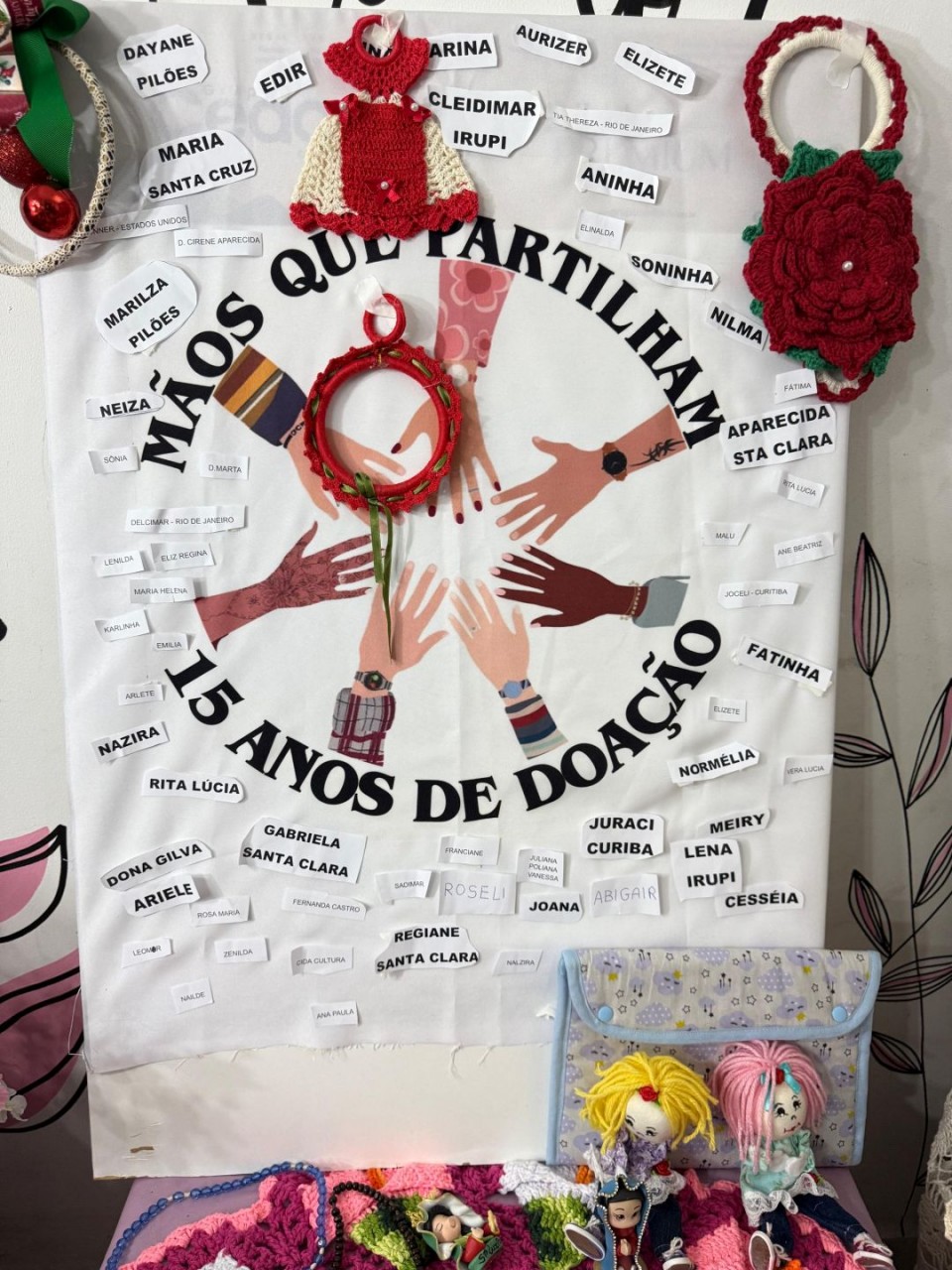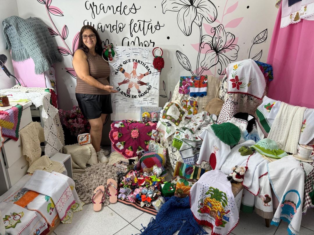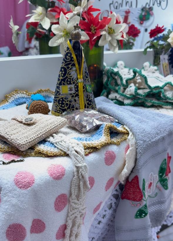 "O valor arrecadado lá é destinado às 15 obras sociais da Igreja, entre elas a 'Casa do Pão', 'Projeto de Educação Musical do Santuário de Aparecida', 'Colinho de Mãe', entre outros do Santuário de Aparecida em São Paulo", explica Abigair. Esse ano, serão enviadas mais de 200 peças, todas etiquetadas com o nome e logomarca (caso tenha) das artesãs que as produziram.