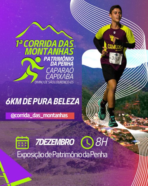 Estão abertas as inscrições para a 1ª Corrida das Montanhas, em Patrimônio da Penha, distrito de Divino de São Lourenço. A grande largada será no dia 7 de dezembro.