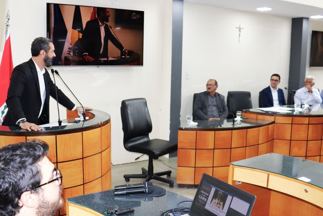 Na parte da tarde, a sessão oficial ocorreu na Câmara Municipal, com a presença do conselheiro e diretor da Escola de Contas, Rodrigo Chamoun, além de prefeitos da região, como Luis Carlos Pancoti (Ibatiba) e Dito Silva (Muniz Freire), e a diretora-executiva do Consórcio Caparaó, Bruna Loura, secretários e servidores municipais.