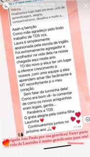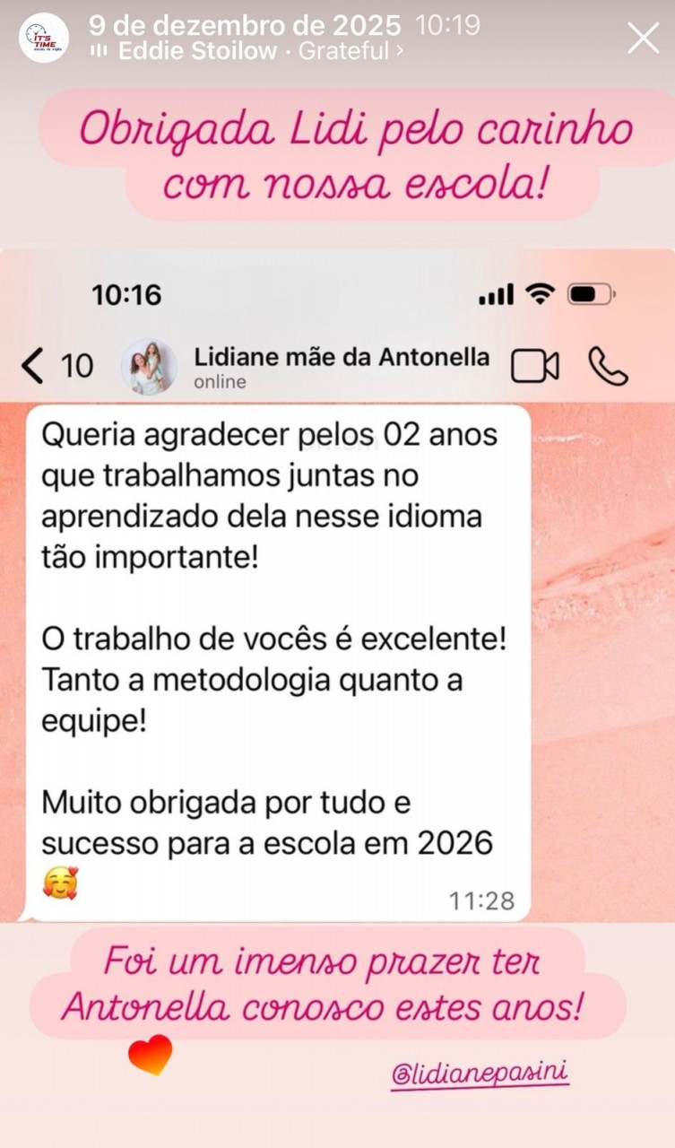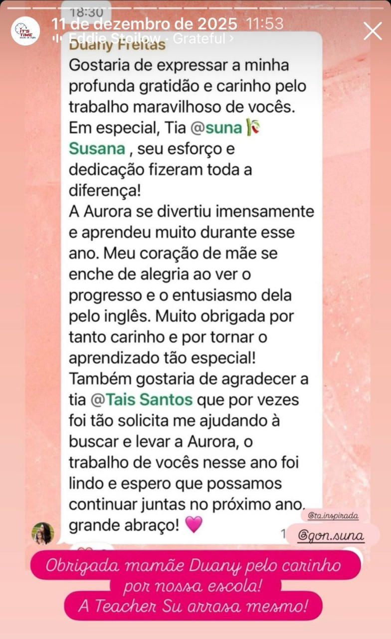 Os relatos destacam não apenas o aprendizado do idioma, mas também o impacto positivo na confiança, no desenvolvimento pessoal e na preparação para o futuro. Esse retorno espontâneo reforça a qualidade do trabalho desenvolvido e o vínculo criado entre escola e estudantes.