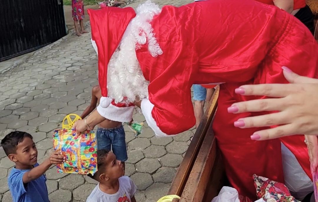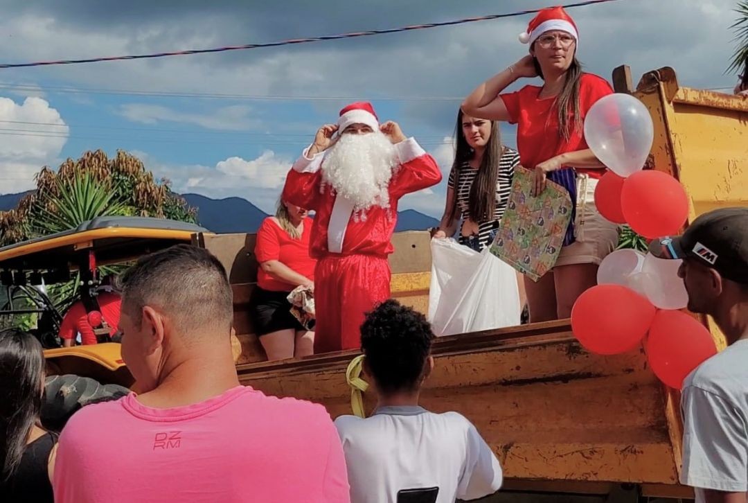 Este ano, Papai Noel percorreu as ruas, em cima de uma caçamba puxada por um trator, para fazer a distribuição dos 652 brinquedos arrecadados. A entrega aconteceu nos bairros Centro, Guanabara, Quilombo, Pito, distrito de Nossa Senhora das Graças e algumas localidades da zona rural.