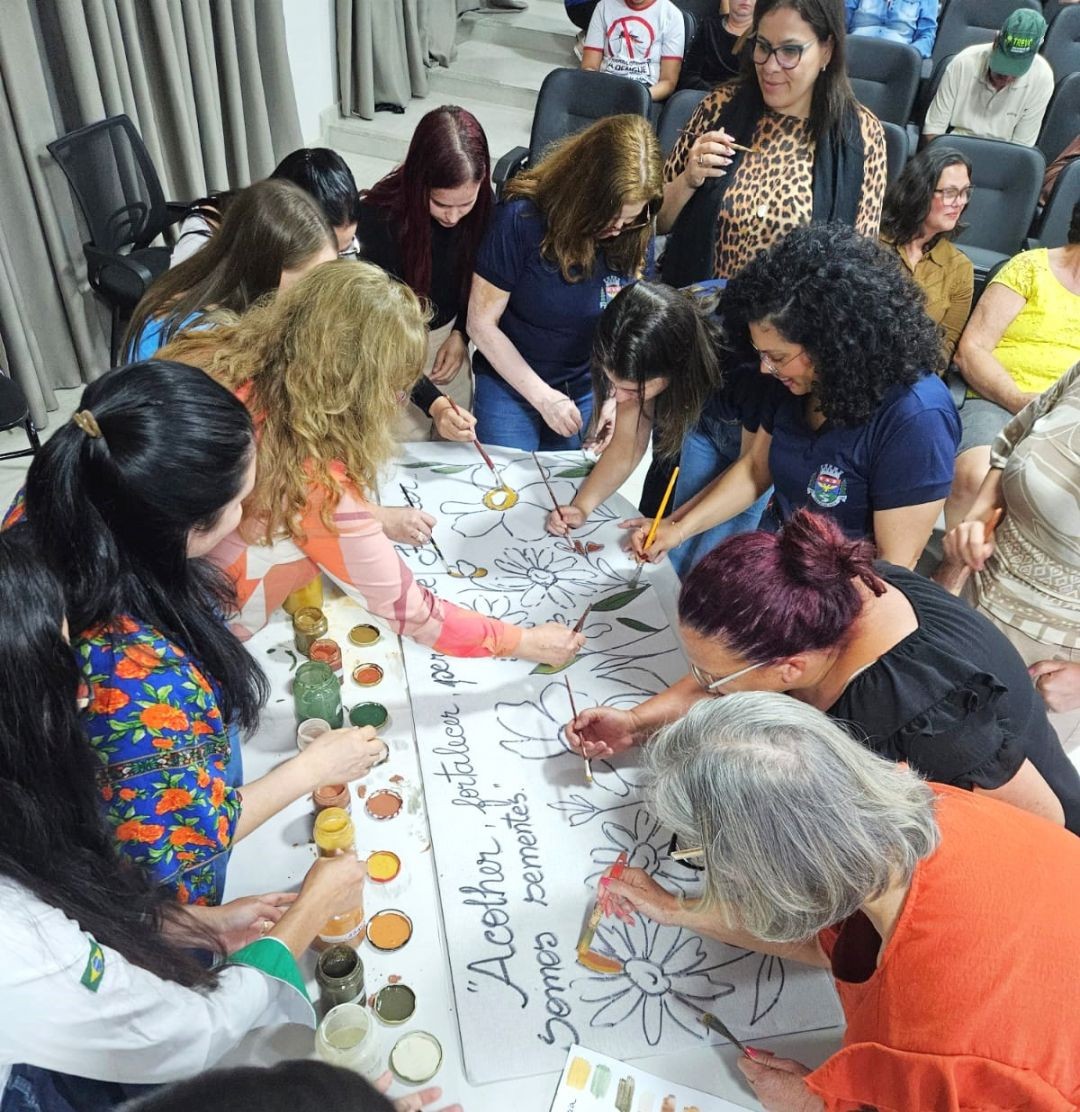 Também fez parte da programação a vivência artística com o Projeto Cores da Terra, conduzida pela pedagoga e artista Fabiana Natalino, reconhecida por sua conexão com a natureza e por sua pesquisa sobre os elementos da Terra. As participantes puderam experimentar as tintas e gizes de terra colorida da Serra do Caparaó, em um exercício de expressão criativa e ancestralidade, que reforçou a potência da arte como caminho de empoderamento feminino.