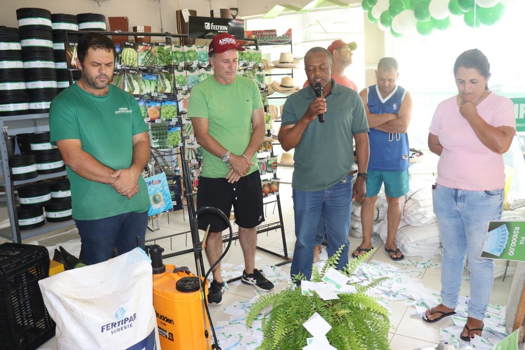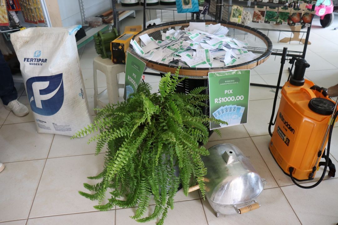 Entre os prêmios sorteados estavam dois PIX de R$ 1 mil, 50 sacos de adubo, um pulverizador SS-20 B, uma engenhoca, uma churrasqueira e uma inversor de solda.