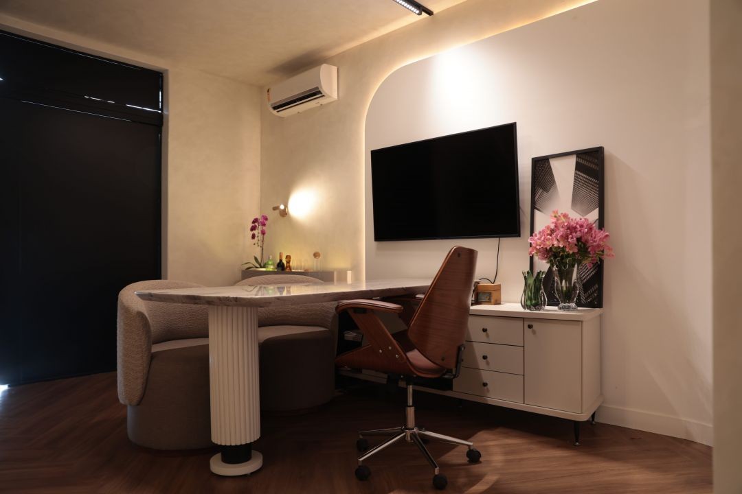 De acordo com Sabrina, a proposta do novo escritório é proporcionar uma experiência visual e sensorial em todas as áreas da arquitetura e do design. O espaço é moderno, inovador e, através de parcerias com fornecedores, é possível que o cliente veja em tempo real amostras de designer e decoração. "Contamos com a parceria de diversas empresas que aplicaram no nosso espaço o que há de melhor e mais moderno no mercado", explica a arquiteta.