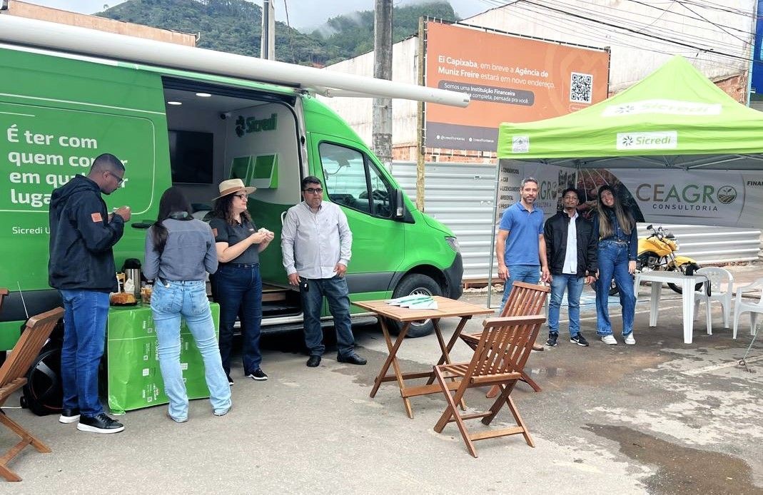 A agência Sicredi de Muniz Freire promoveu, no último dia 31 de outubro, o 1º Feirão de Negócios Sicredi. O evento foi realizado na Praça Divino Espírito Santo, localizada em frente à agência da cooperativa no município. O objetivo foi o de ampliar o acesso dos associados a oportunidades de aquisição de automóveis, sistemas de energia solar, tratores e insumos agrícolas.