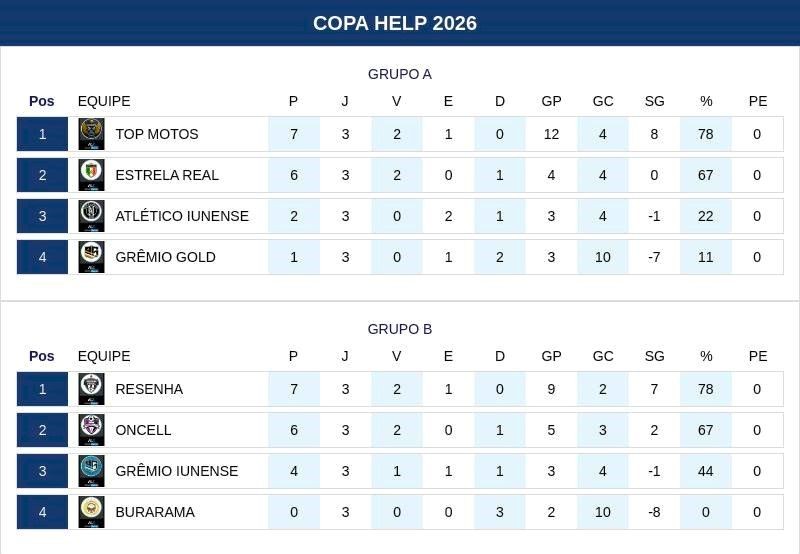 As semifinais da Copa Help de Futsal 2026 foram definidas após as rodadas realizadas na última terça (17) e quinta-feira (19), em Iúna. Os jogos, disputados no Ginásio Municipal Prefeito Romeu Rios, selecionaram as quatro equipes que seguem na disputa pelo título da competição.