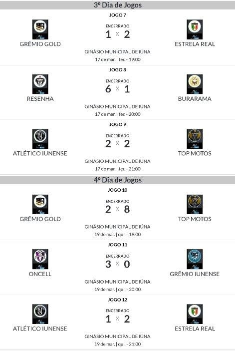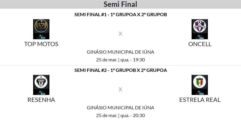 A definição dos classificados veio na quinta-feira. O Top Motos garantiu a vaga ao vencer o Grêmio Gold por 8 a 2. O Oncell avançou após vitória de 3 a 0 sobre o Grêmio Iunense. Já o Estrela Real confirmou o favoritismo ao bater o Atlético Iunense por 2 a 1.