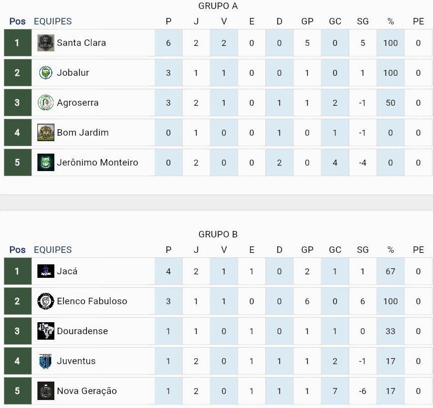 12/04: 13h15 – Santa Clara x Jobalu | 15h15 – Jerônimo Monteiro x Bom Jardim (Folga: Agroserra)