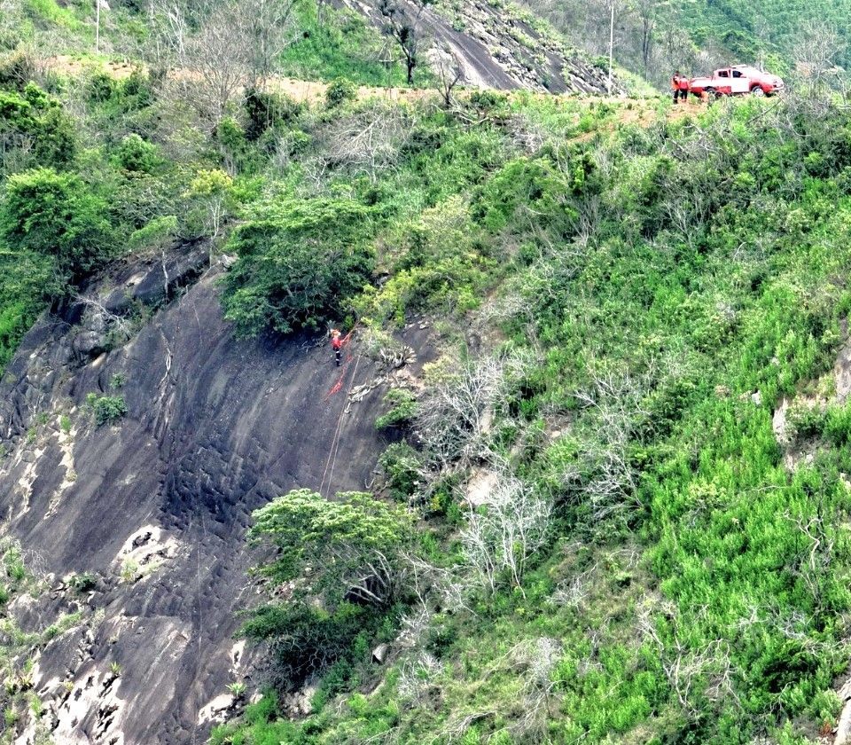 Bombeiros e Defesa Civil resgatam cadela de rocha em comunidade de Muniz Freire