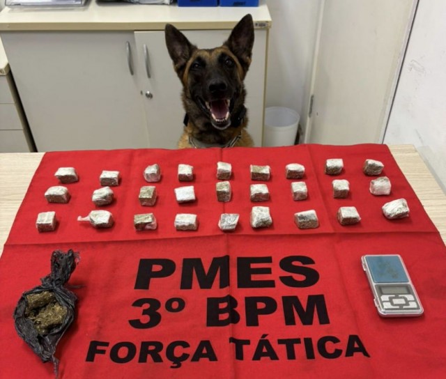 K9 da Polícia Militar apreende drogas em ação contra o tráfico em Guaçuí
