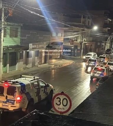 O grupo, composto por adultos, adolescentes e crianças, efetuou os disparos em via pública e chegou a danificar uma viatura